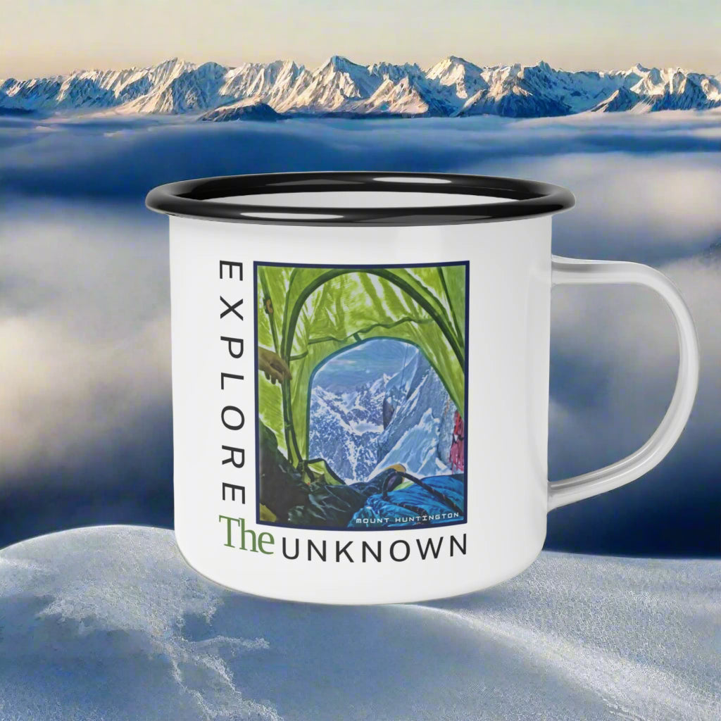 This enamel camp mug features a design inspired by Balin Miller's photo from inside a tent on Mount Huntington. Perfect for nature e...