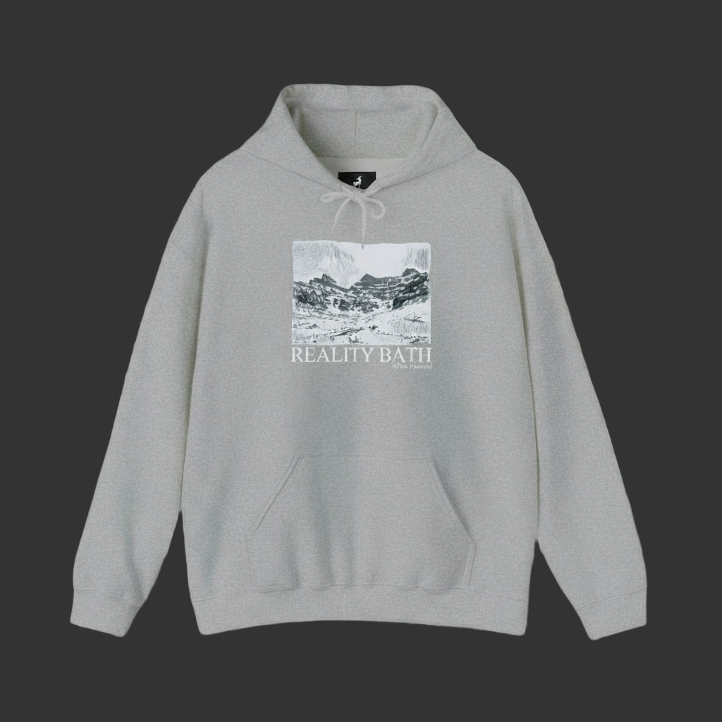 Honor one of the most legendary solo ice climbs in modern history with the Reality Bath heavy hooded sweatshirt. This design commemorates Balin Millers's historic second ascent of Reality Bath, a route that remained unconquered forn 37 years. He completed this climb 2 days befoire his 23 Birthday January 2025.