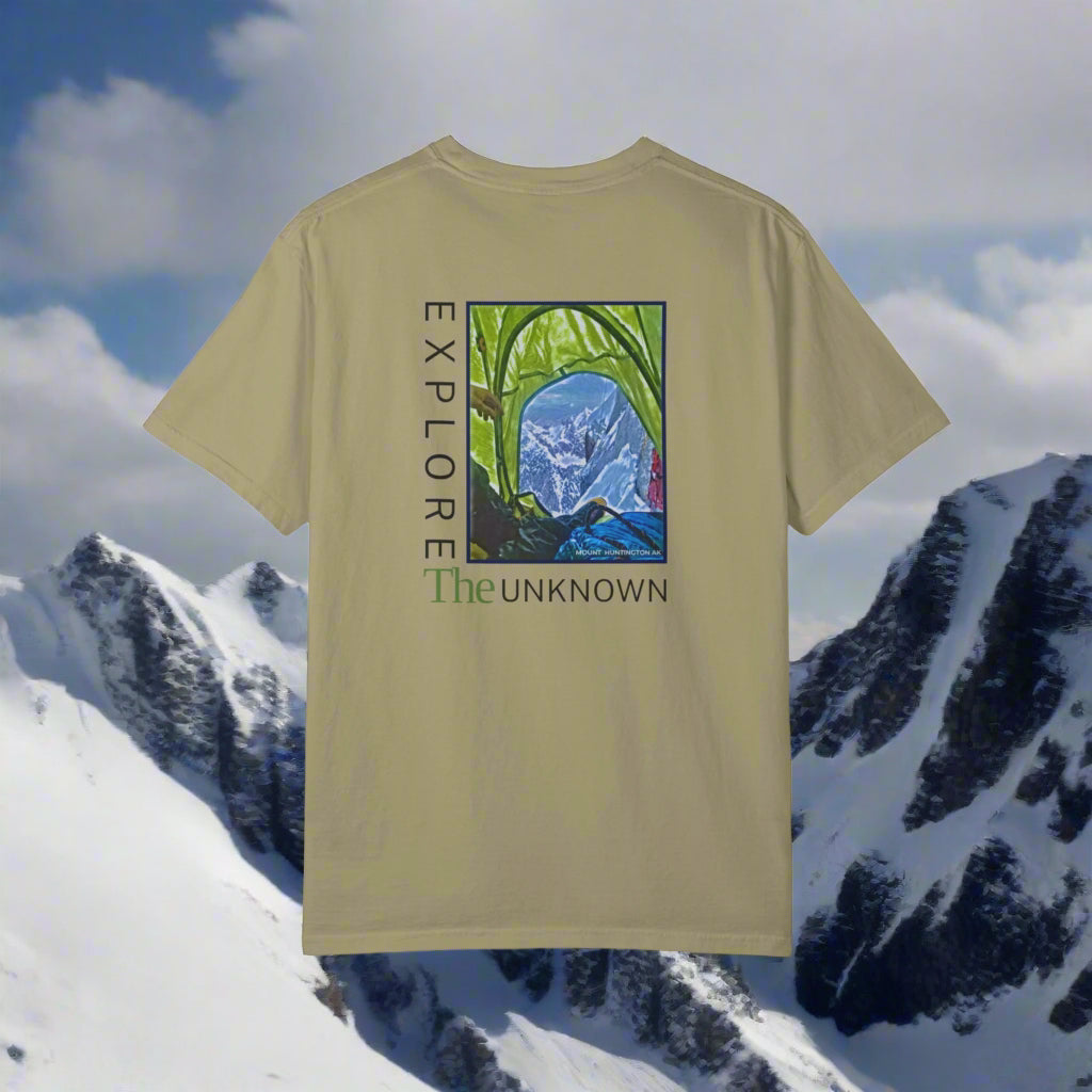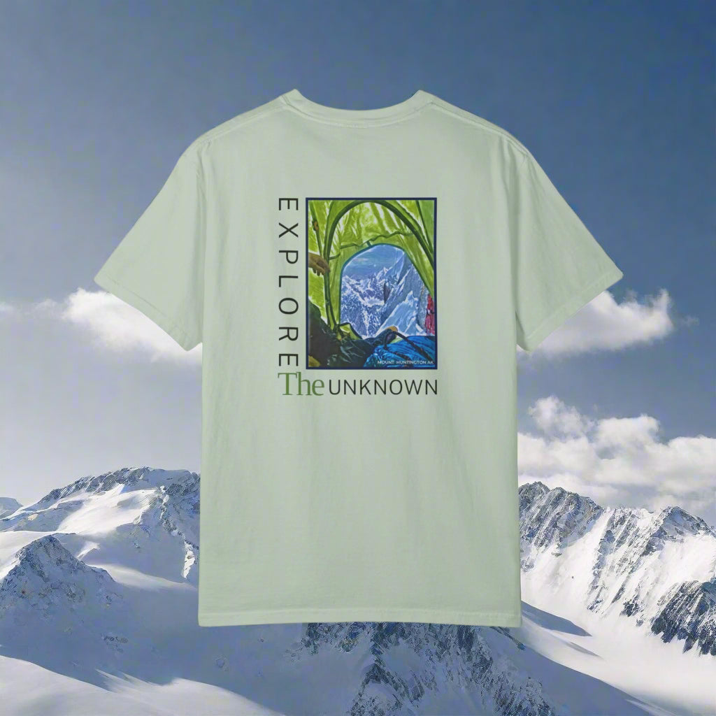 Step into the wild with the Explore The Unknown AK Unisex Tee, featuring a striking outdoor-inspired design that embodies the spirit of adventure. Inspired by photograph taken by Balin Miller nearing the summit of Mount Huntington. Made for those who thrive in the elements, this tee blends premium comfort with durability, making it an essential addition to your outdoor lifestyle.